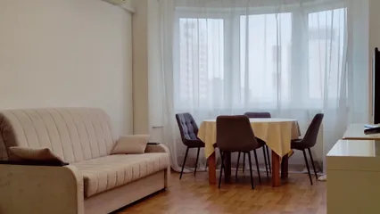Отличная квартира с хорошим евро-ремонтом, на полу ламинат и плитка, стеклопакеты, телевизор, двуспальная кровать и диван, современная стенка, встроенный кухонный гарнитур, стеклокерамическая сенсорная варочная панель, духовой шкаф, стол, стулья, застекленный балкон, двухкамерный холодильник, СТА. Чистый подъезд, консьерж. Павши...